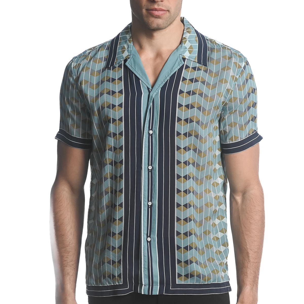 Navy/Khaki Chevron Short Sleeve Border Shirt by Postmarc